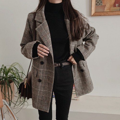 심플리무드 어텀 워밍 타탄체크 자켓 여성용