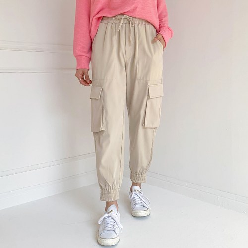 빼빼 여성용 카고포켓 밴딩 조거팬츠