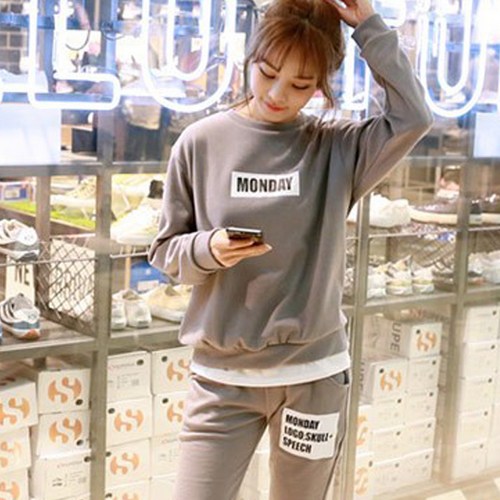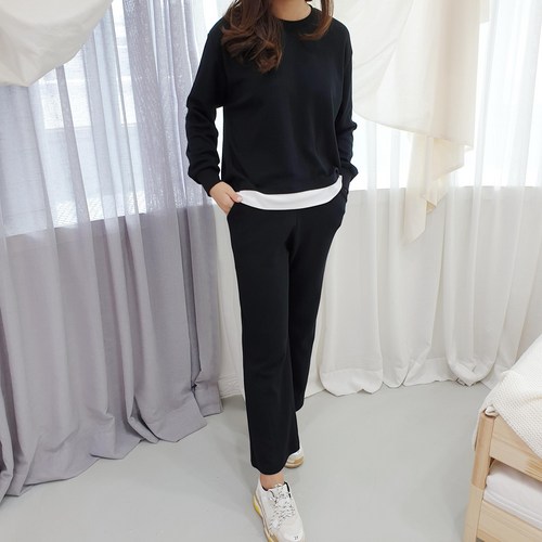 윤코코 여성용 레이어드 맨투맨 트레이닝 세트