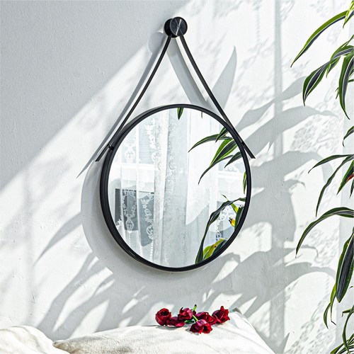 모카 알루미늄 원형 스트랩 거울 (골드 블랙 화이트 핑크 민트), 원형 스트랩 거울 – 블랙