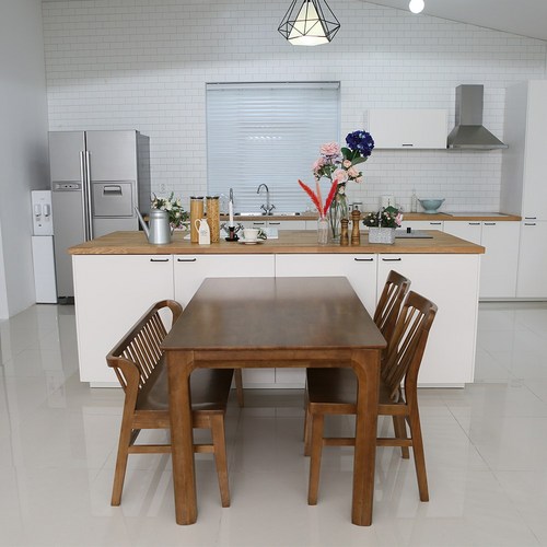 참갤러리 밀레 원목 식탁 세트, 4인 식탁+의자 2개+벤치