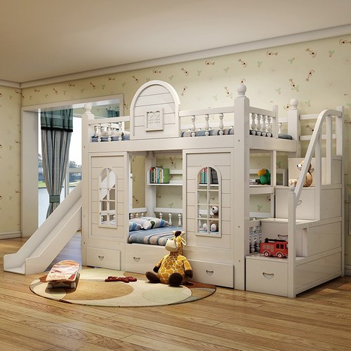 아동 미끄럼틀 2층침대 침대 높고 낮은 침대 이층 침대 다기능 어린이 어머니 침대 소녀 공주 침대 성 슬라이드 침대 단단한 나무 중 어린이 침대, 1200mm 2000mm