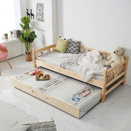 [베스트셀링] 인트리 캐서린 원목 슬라이딩 이단침대 (깔판내장매트2개 포함), 내츄럴(원목색)