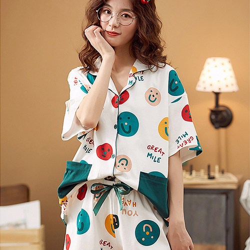 도씨 여성용 스마일퐁퐁 잠옷 반팔 카라상하세트