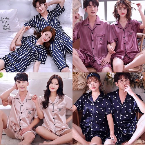 topcross 홈웨어 여름 반팔 커플 실크 수면 잠옷 파자마세트