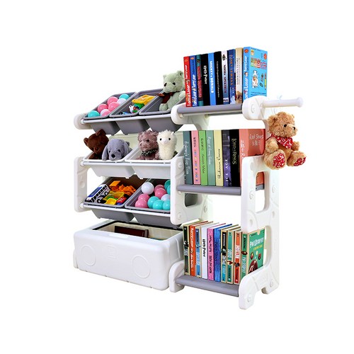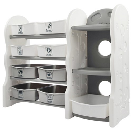 리빙코디 펀키즈 4단 정리함 + 책장, 화이트 + 그레이