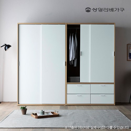 [삼익가구]디레브 슬라이딩 옷장 A세트(행거형+선반형), 화이트