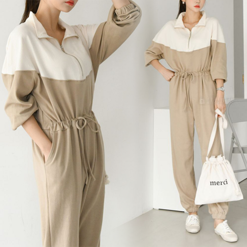 Newcare 여성 점프수트 배색 가을 집업 츄리닝점프수트