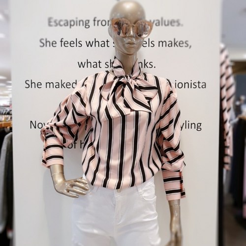 [제시뉴욕] 럭셔리한 블링블링 스트라이프 리본 블라우스 J825NSBP1410