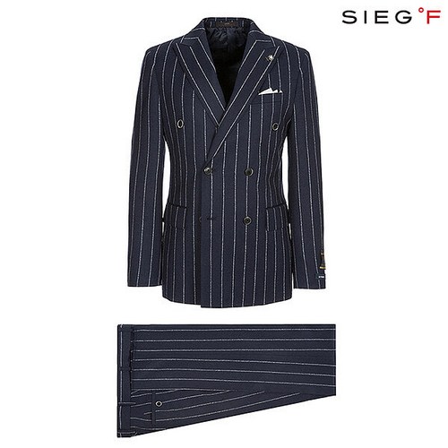 지이크 지이크 초크 스트라이프 울 네이비 더블 정장세트(FWJAI1435_FWPAI1035) (P001088171)