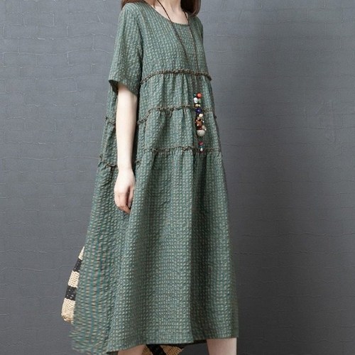 무생채 여름 루즈핏 지지미 원피스 코튼과 린넨 드레스 여성 새로운