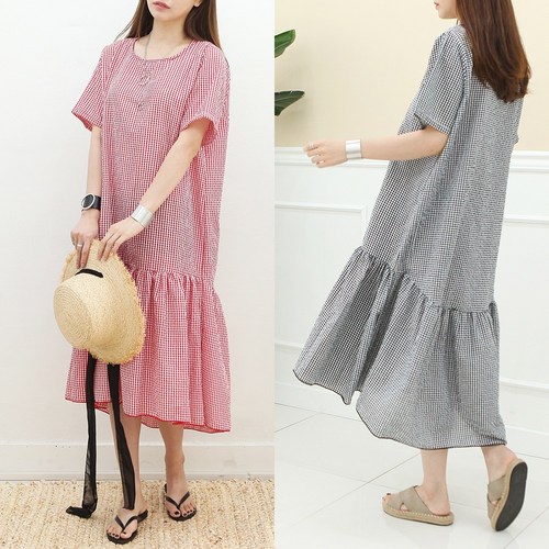 허니제이 / 카미 체크 지지미 루즈핏 원피스(4colors)