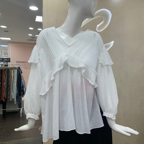 [지컷][19여름][기획]진주단추 소매퍼프 블라우스(7259260001)(72592-60001)(갤러리아)