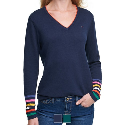 타미힐피거 여성 레인보우 소매 스웨터 2 COLOR