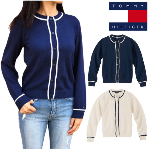 타미힐피거 여성 걸즈 트림 라이닝 와플 가디건