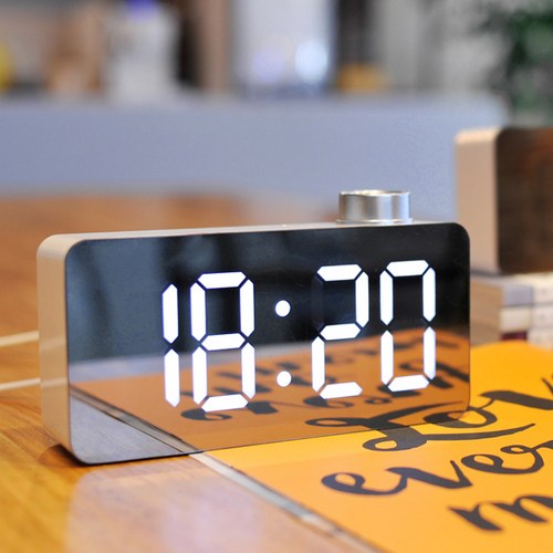 무아스 LED 팝 미러클락 미니 탁상시계, 화이트