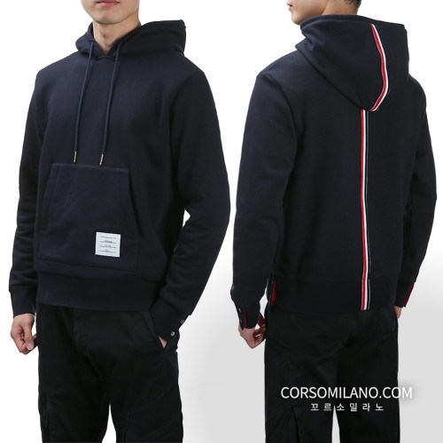톰브라운 남성 삼선 백 로고 네이비 후드티 MJT086A 03377 415