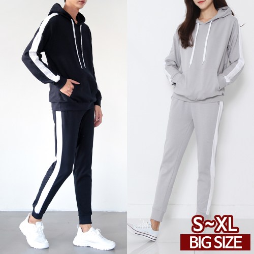 코디제이 남여공용트레이닝세트 배색 조거 후드 세트츄리닝세트 후드세트 데일리룩