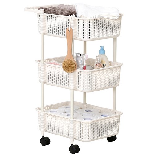 네이쳐리빙 니트 짜임 이동식 수납선반 3단, 크림