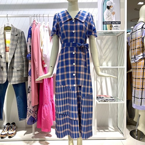 티렌 카라 탈부착 벨티드 체크 원피스 L202PWO521 체크원피스 벨티드원피스 카라원피스 여름원피스 카라탈부착원피스 플레어원피스