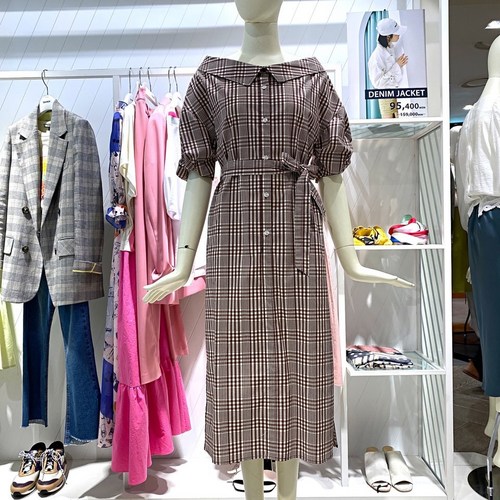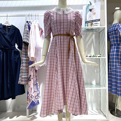 티렌 카라 탈부착 벨티드 체크 원피스 L202PWO521 체크원피스 벨티드원피스 카라원피스 여름원피스 카라탈부착원피스 플레어원피스