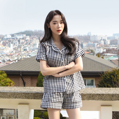 어나더디 여성용 잔체크 반팔 파자마 세트