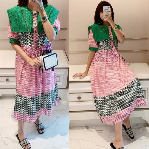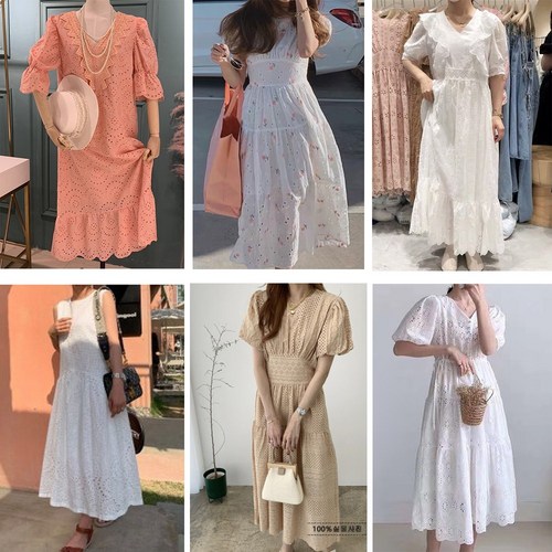 여성 여름 반소매 빈티지 시원한 롱 펀칭 원피스