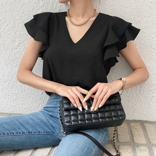 kirahosi 여름 쉬폰 여자 프릴 반팔 블라우스 165호+ 덧신 증정 BFhc00w0