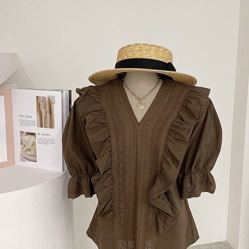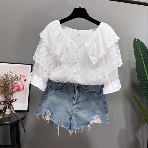 화이트 프릴 블라우스 펀칭 블라우스 레이스 프릴