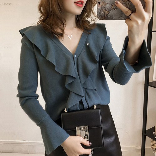 플루디 / 브이넥 프릴 빅카라 블라우스