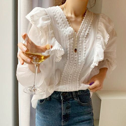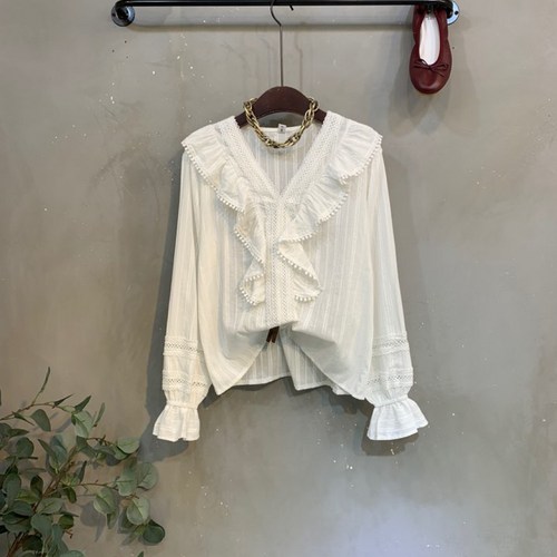 제이민 브이넥 펀칭포인트 프릴블라우스