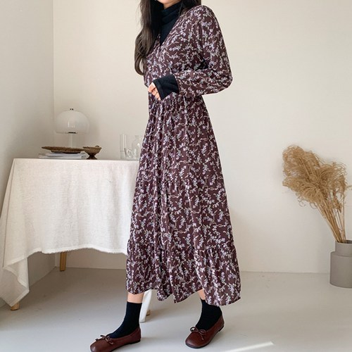 여자 여성 하객 룩 롱 꽃무늬 린넨 린넨 가을 겨울 원피스 CDO1465