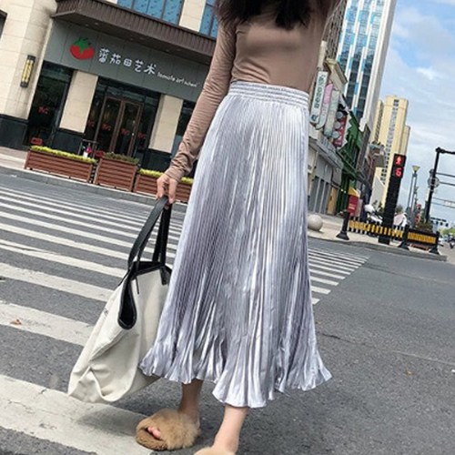 알럽홈 여성용 골드벨벳 플리츠 롱스커트