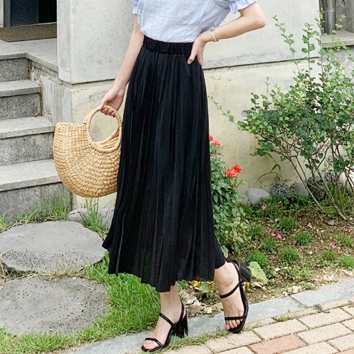 가비진 여성 쉬폰 플리츠 밴딩 롱치마 224