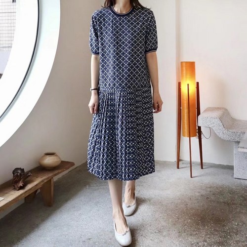 돌체비타샵 클로버 네이비 패턴 밑단 플리츠 원피스