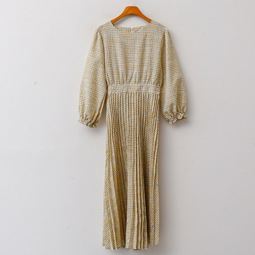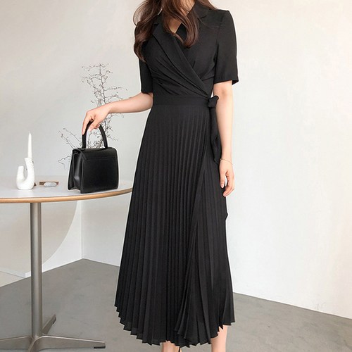 뉴욕멋쟁이 리버 브이 플리츠 롱 반팔 원피스