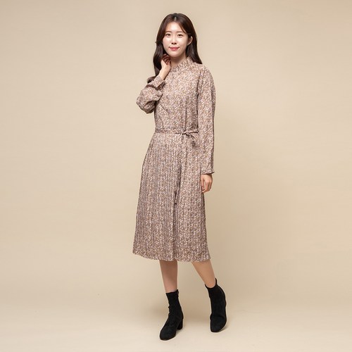 딜라잇J 트렌치 플리츠 긴팔 롱 원피스