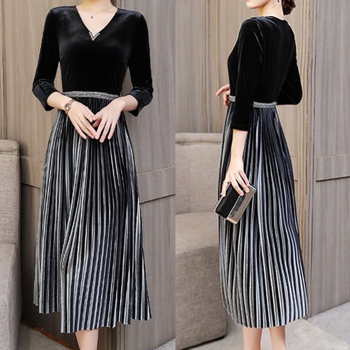 럭셔리 플리츠원피스 봄 여름 어머니 우아한 주름원피스