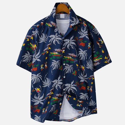 [마마루시아] 남성 하와이안 셔츠 바캉스룩ka82, 네이비