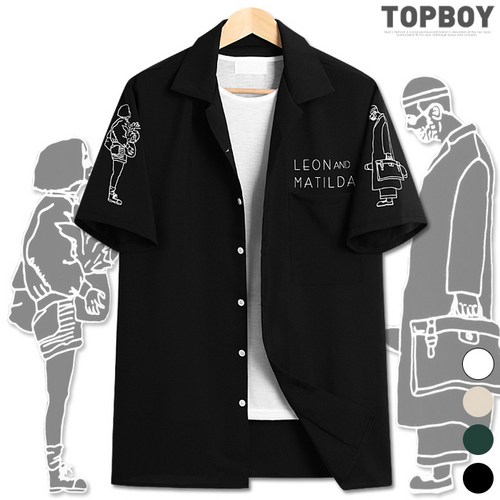 미팅레옹 오버핏 반팔셔츠 (DO427), 블랙