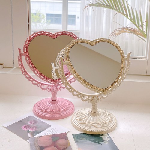 프레쉬영 양면 거울 클래식 궁정풍 사랑하트 테이블 탑 화장거울 소녀 핑크 하트 회전가 사랑 프린세스