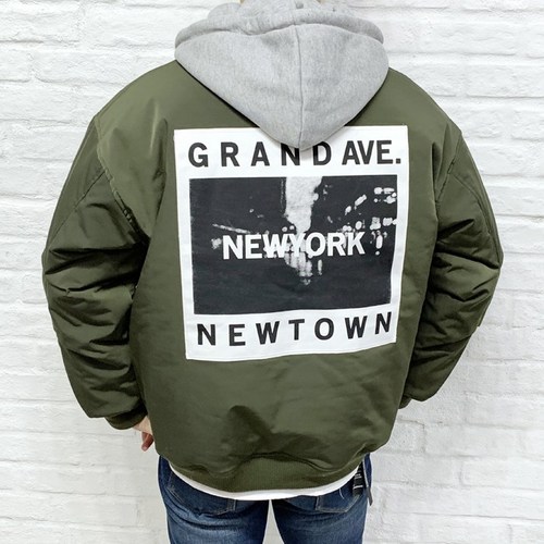 VANZ 남자 겨울 오버핏 스트릿 뉴욕패치 후드 항공패딩점퍼2color