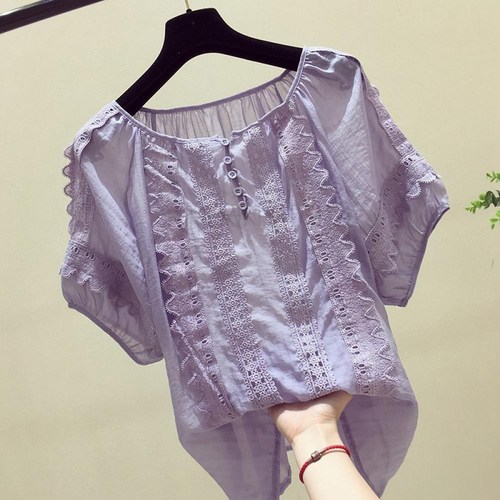 행복한여자 [당일발송]펀칭 레이스 A라인 루즈핏 블라우스