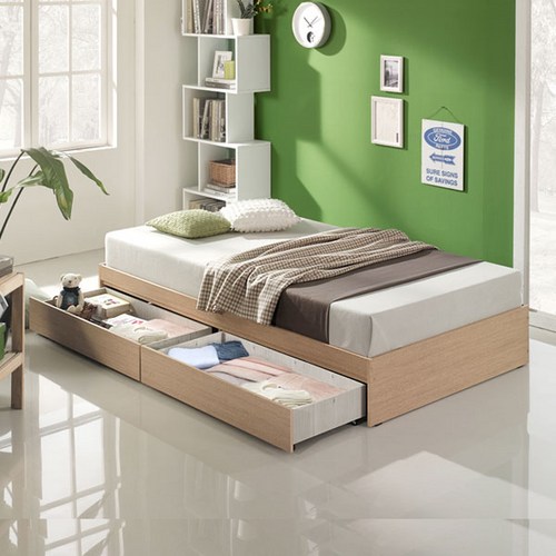 [가구야] 기간한정! 통깔판 서랍형 침대+매트리스, 싱글(오크)