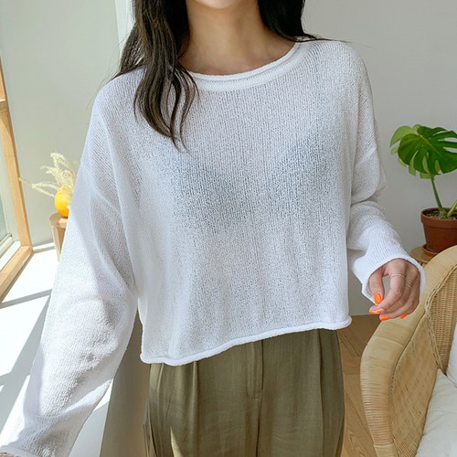 아모르데이 여성용 썸플리 라운드 시스루 베이직 니트