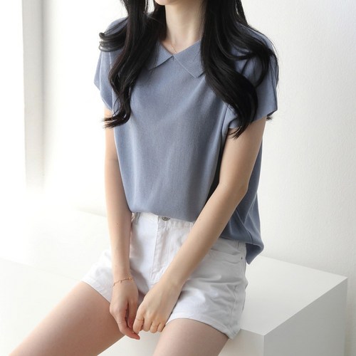 제니트 봄 여름 여성 루즈핏 반팔 소매 카라 니트 여성니트 봄니트