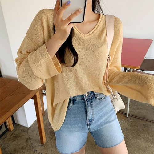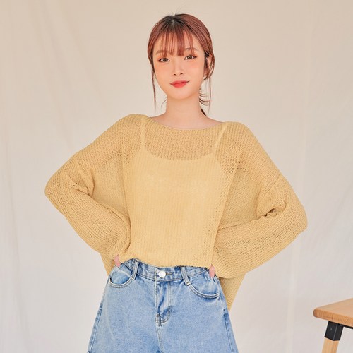 제니트 봄 여름 여성 루즈핏 브이넥 망사 롱 니트티 여름니트 시스루니트 얇은니트