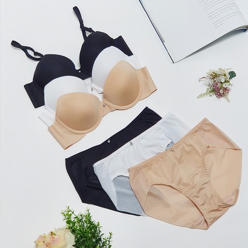 애플스토리 심플누디 1차 노라인 브라 3종 + 팬티 3종 세트