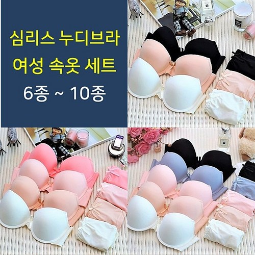 [로코코언더웨어] 누디브라 햄팬티 여성속옷 ABC컵 6종 8종 10종 세트 브라+팬티