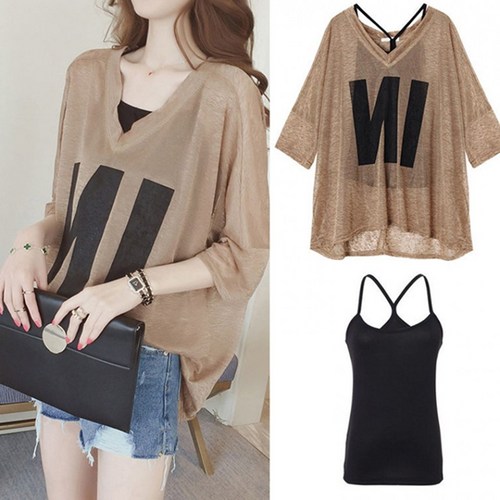 여성티셔츠 시스루미나시세트 시스루티셔츠 시스루코디 여성여름티 반팔 티셔츠